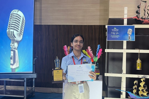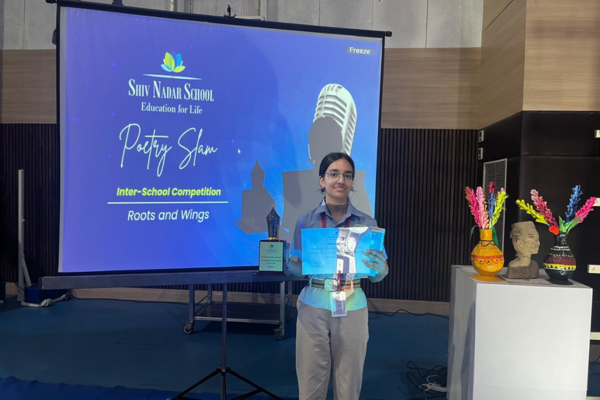 at the ‘Pour It on Paper’ Inter-School Poetry Competition, held on May 8, 2025, at Shiv Nadar School, Gurgaon.